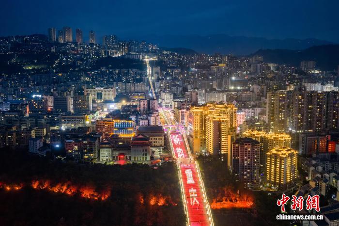 图为夜色中的巫山神女年夜扶梯。(无人机像片)中新社记者 何蓬磊 摄