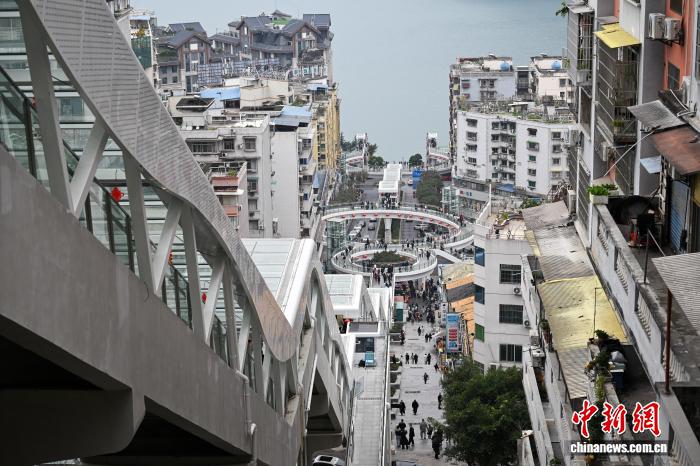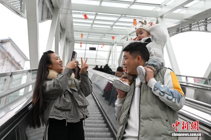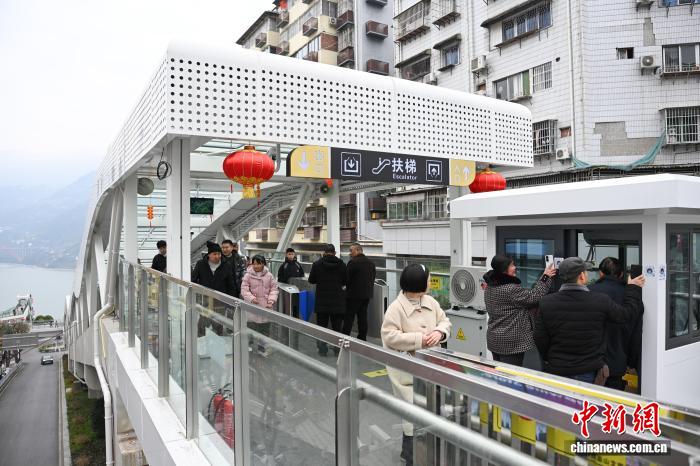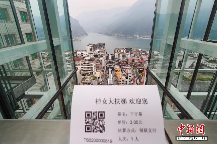 图为市平易近趁坐巫山神女年夜扶梯出止。中新社记者 何蓬磊 摄