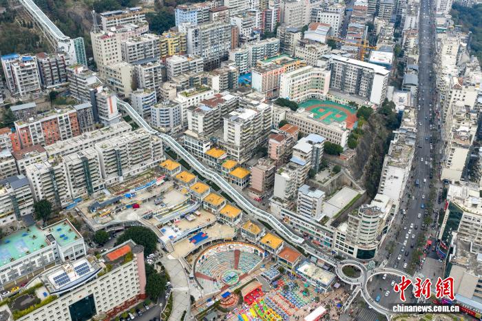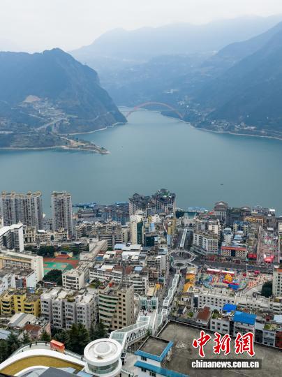 图为参加应用的巫山神女年夜扶梯。(无人机像片)中新社记者 何蓬磊 摄